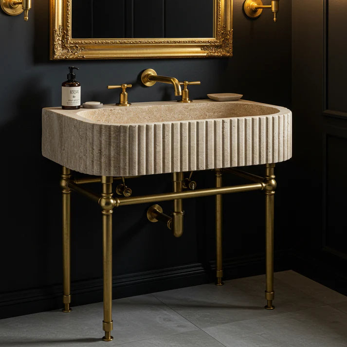 Wood Base Fluted Travertine Sink