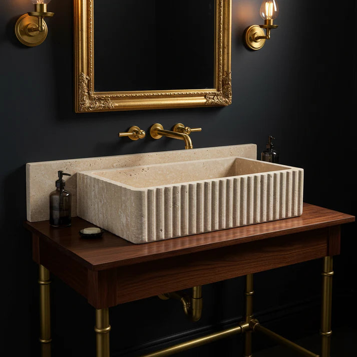 Beveled Edge Fluted Travertine Sink