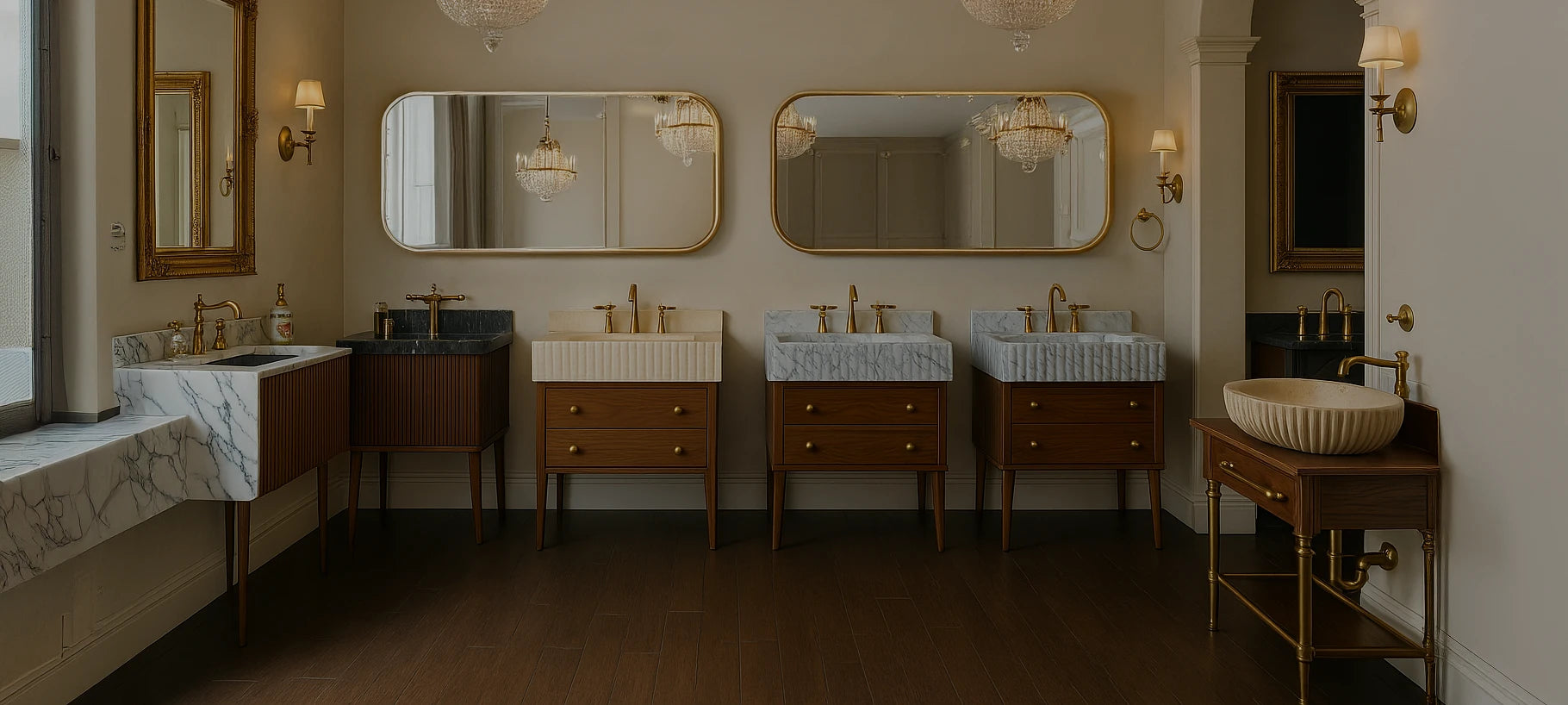 Whether you’re drawn to the purity of a minimalist marble sink, the bold touch of a sink with matte or brass-finished metal legs, or the warmth of a solid-wood vanity crafted from real walnut or beech — we offer refined options for every taste. Choose your preferred stone, finish, and form to create a bathroom centerpiece that combines function, beauty, and exceptional craftsmanship.
